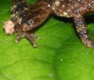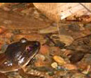 Lower row: White-lipped slender toad (Ansonia albomaculata), Giant river frog, male and female during nest construction (Limnonectes leporinus), Blotch-thighed torrent frog(Meristogenys poecilus).